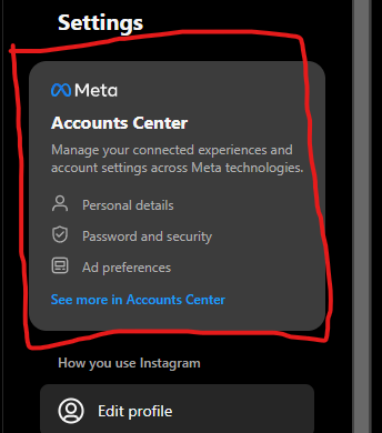 First, go to Instagram and go to the settings. Select the "Meta Account Center" (See image 1).